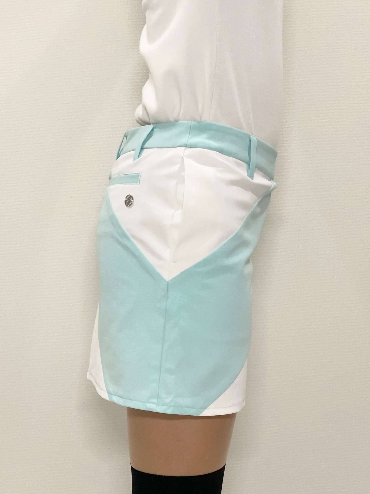 ミントブルーとホワイトのコントラストが可愛い♡斜めに切り替えが入ることによってスッキリ見せてくれる。ストレッチのきいた生地なのでピッタリしていても動きやすい。